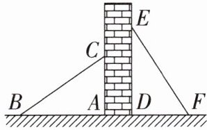4. 如图,有两个长度相同的滑梯靠在一面墙上.已知左边滑梯的高度AC与右边滑梯水平方向的长度DF相等,这两个滑梯与地面夹角中$∠ABC= 32^{\circ }$,则$∠DFE$的度数是(