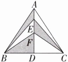 16. 如图,已知 AD 所在直线是$△ABC$的对称轴,点 E,F 是 AD 上的两点.若$BC= 4,AD = 3$,则图中阴影部分的面积是
