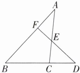 9. 如图,已知$D是\triangle ABC的边BC$延长线上一点,$DF交AC于点E$,$\angle A= 35^{\circ}$,$\angle ACD= 83^{\circ}$.