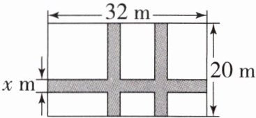 3. 如图,某小区计划在一块长为32m,宽为20m的矩形空地上修建三条同样宽的道路,剩余的空地上种植草坪,使草坪的面积为$570m^2.$若设道路的宽为x m,则下面所列方程正确的是(