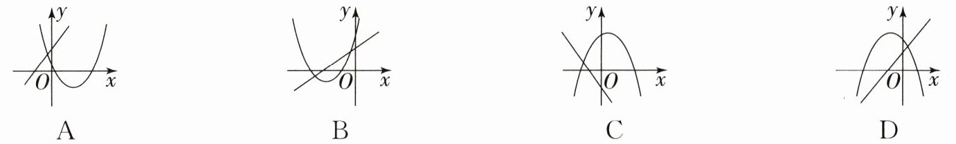 解析:选B.A.由抛物线可知,a>0,b<0,c>0,则ac>0,由直线可知,ac>0,b>0,故本选项错误;B.由抛物线可知,a>0,b>0,c>0,则ac>0,由直线可知,ac>0,b>0,故本选项正确;C.由抛物线可知,a<0,b>0,c>0,则ac<0,由直线可知,ac<0,b<0,故本选项错误;D.由抛物线可知,a<0,b<0,c>0,则ac<0,由直线可知,ac>0,b>0,故本选项错误.故选B.
