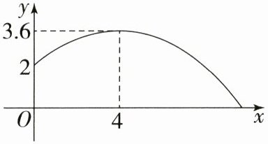 解析:由题意得,抛物线的顶点为(4,3.6),设抛物线的解析式为y = a(x - 4)² + 3.6.把(0,2)代入解析式可求得a = - 0.1,所以抛物线的解析式为y = - 0.1(x - 4)² + 3.6.当y = 0时, - 0.1(x - 4)² + 3.6 = 0,解得x₁ = - 2(不合题意,舍去),x₂ = 10,即这名男生此次掷实心球的成绩是10米.答案:10