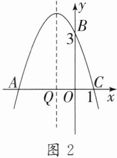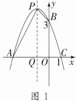 (2)设二次函数图象的顶点为 $ P $,对称轴与 $ x $ 轴交于点 $ Q $,求四边形 $ AOBP $ 的面积(请在图 1 中探索);