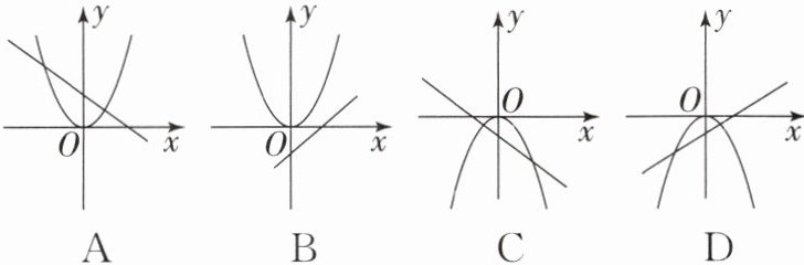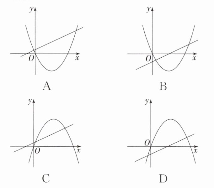 4. 在同一平面直角坐标系中,一次函数 $ y = ax + b $ 与二次函数 $ y = ax^{2} + bx $ 的大致图象可能是(