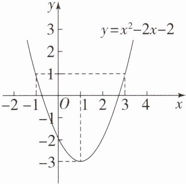 3. 函数$y = x^{2} - 2x - 2$的图象如图所示,根据其中提供的信息,可求得使$y \geqslant 1成立的x$的取值范围是(