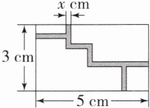 2. 如图是一个迷宫游戏盘的局部平面简化示意图,该矩形的长、宽分别为 5 cm、3 cm,其中阴影部分为迷宫中的挡板,设挡板的宽度为 $ x $ cm,小球滚动的区域(空白区域)的面积为 $ y $ $ cm^{2} $,则下列所列方程正确的是(