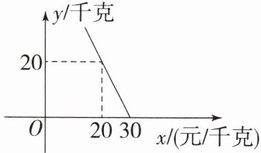 7.某超市对进货价为10元/千克的某品种苹果的销售情况进行统计,发现每天销售量$y$(千克)与销售单价$x$(元/千克)之间存在一次函数关系,如图.