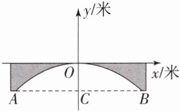 2. 某大桥的桥拱可以用抛物线的一部分表示,函数关系为$y = -\frac{1}{18}x^2$,当水面宽度为12米时,水面与桥拱顶之间的距离为