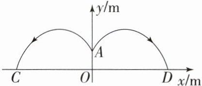 解析:选C.令$y = 0$,得$-\frac{1}{6}(x - 5)^{2}+6 = 0$,解得$x_1 = 11$,$x_2 = -1$(不合题意,舍去),所以点$D(11,0)$,所以$OD = 11m$,所以$CD = 2OD = 22m$.