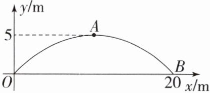 10. 如图是一座抛物线形桥拱的示意图,在以其左侧桥墩与水面接触点为原点建立的平面直角坐标系下,经测量得水面宽度$OB = 20m$,拱顶$A到水面的距离为5m$.