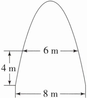 9. 某大学的校门(如图所示)是抛物线形水泥建筑物,大门的宽度为$8m$,两侧距地面$4m$高处各有一个挂校名横匾用的铁环,两铁环的水平距离为$6m$,那么校门的高是