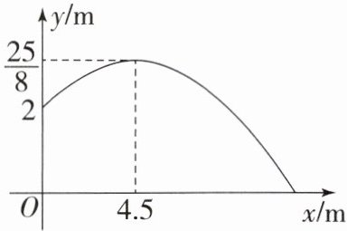 平距离x(m)之间的函数关系如图所示,掷出时起点处高度为2m,当水平距离为4.5m时,实心球行进至最高点$\frac{25}{8}m$处.