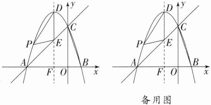 (2) 点 $ P $ 在 $ AC $ 上方二次函数的图象上,且 $ \triangle PDE $ 的面积等于 $ 6 $,求点 $ P $ 的坐标;