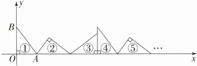 15. 如图,图①为$Rt\triangle AOB$,$\angle AOB = 90^{\circ}$,其中$OA = 3$,$OB = 4$,将$\triangle AOB沿x轴依次以A$,$B$,$O$为旋转中心顺时针旋转,分别得到图②,图③,…$$,则旋转到图⑩时直角顶点的坐标是