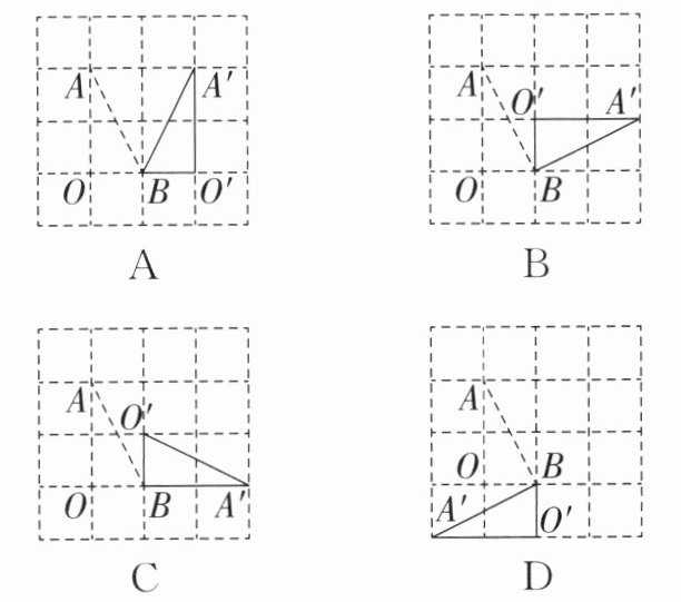 11. 如图,在方格纸中,将$Rt\triangle AOB绕点B按顺时针方向旋转90^{\circ}后得到Rt\triangle A'O'B$,则下列四个图形中正确的是(