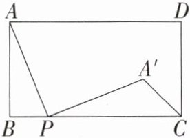 解析:过点A'作A'F⊥BC于点F,则∠PBA=∠A'FP=90°,所以∠FPA'+∠FA'P=90°.又由题意,得∠BPA+∠FPA'=90°,所以∠BPA=∠FA'P.又PA=A'P,所以△BPA≌△FA'P(AAS).所以BA=FP=5,BP=FA'.设BP=FA'=x.在矩形ABCD中,BC=AD=9,所以CF=BC - BP - PF=9 - x - 5=4 - x.在Rt△FCA'中,(4 - x)²+x²=(2√2)²,解得x=2,所以BP=2.答案:2