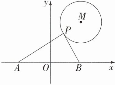 解析:连接PO.因为PA⊥PB,所以∠APB=90°.因为点A,B关于原点O对称,所以AO=BO,所以AB=2PO.若要使AB取得最大值,则PO需取得最大值.连接OM,并延长交⊙M于点P',当点P位于P'位置时,OP'取得最大值.过点M作MQ⊥x轴于点Q,