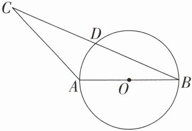 因为BD=DC,BO=OA,所以OD是△ABC的中位线,所以 $ OD=\frac{1}{2}AC $. 因为AB=AC=4,且AB为直径,所以 $ OD=\frac{1}{2}AC=2 $,⊙O的半径为2,所以点D在⊙O上.