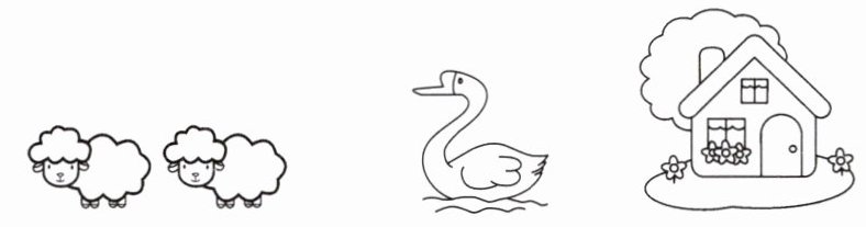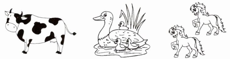 1. cow 2. ducks 3. horses 4. sheep 5. goose 6. house