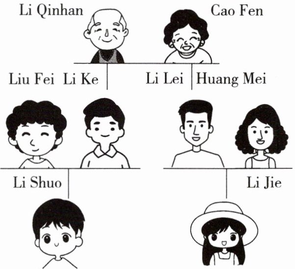Ⅰ. 根据家庭关系图完成句子。(每空一词)