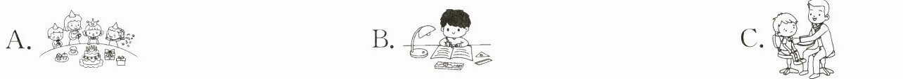 第一节 听对话,根据对话内容和所给问题,选择正确图片。(读一遍)