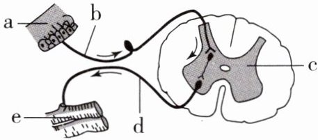 :b和d在此处建立联系,并将神经冲动传给传出神经
