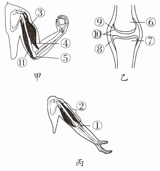 (5)一块完整的骨骼肌是一个器官,它是由图丙中所示的乳白色的肌腱和中间较粗部分[