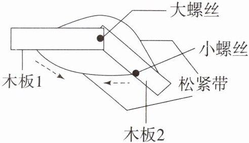 12. 如图是某同学利用木板、松紧带、螺丝等材料制作的一个肌肉牵拉骨运动的模型,模型中模拟肌肉的是(