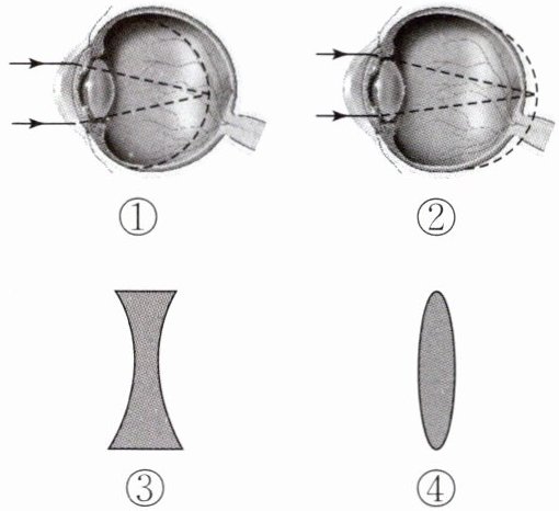 5. 下图中表示近视眼和应戴眼镜(透镜)类型的正确组合是(