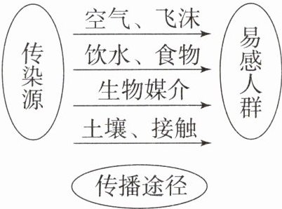 到达人或动物所经过的途径。举例:西尼罗热由蚊虫叮咬传播。(3)易感人群:对某种传染病缺乏