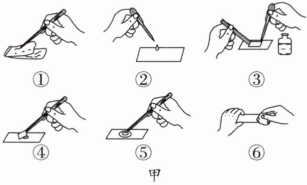 9. 在老师的指导下,小秦制作并观察了洋葱鳞片叶内表皮细胞临时装片。图甲为制作临时装片部分过程示意图,图乙为显微镜构造图,请据图回答下列问题: