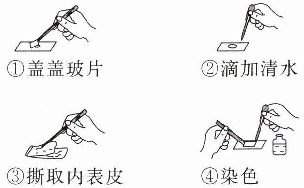 3. 如图是制作“洋葱鳞片叶内表皮细胞临时装片”实验的部分步骤。正确的操作顺序是(