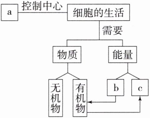 1. 小景学习了细胞的结构和功能后,绘制了如图所示概念图,其中a、b、c分别表示不同的结构或物质,下列分析不正确的是(