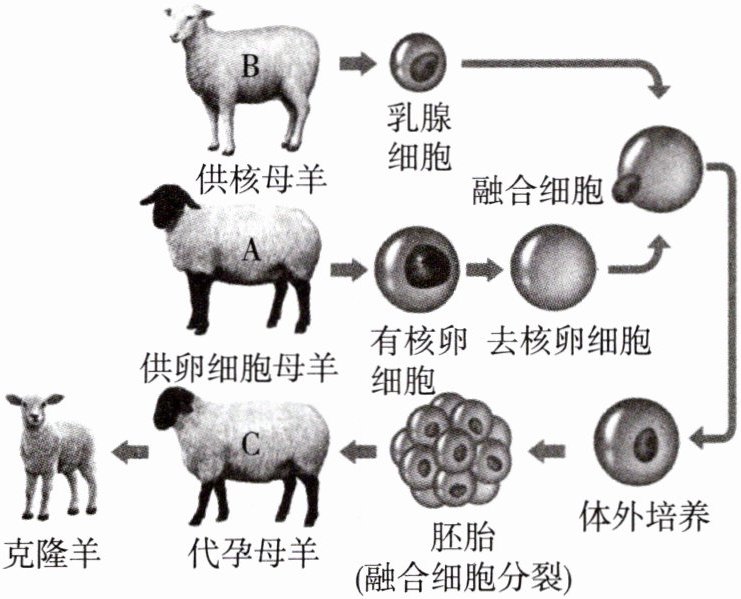 ;C羊起代孕作用。(注:实验时B羊没有直接取出细胞核,而是取出乳腺细胞,这是为了提高成功率)(2)