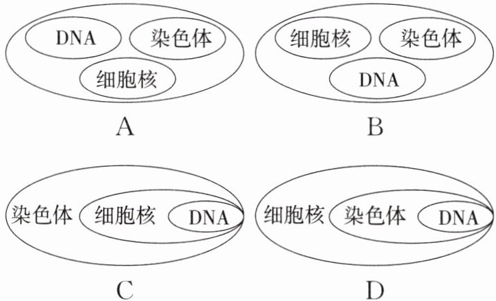 2. 以下表现细胞核、染色体、DNA之间层次关系正确的是(
