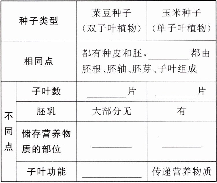 的环境中才能萌发,否则很快就会丧失生命力。3. 比较菜豆种子和玉米种子结构的异同
