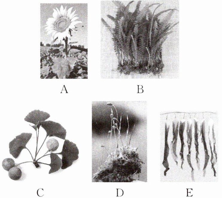 (填字母)。银杏与向日葵的共同特点是都能产生种子