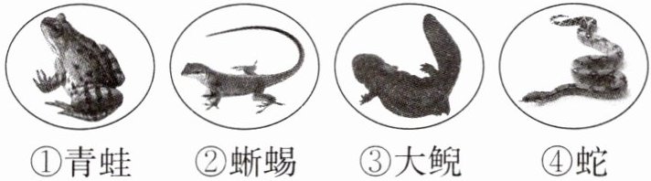 (1) 上图动物中,除青蛙外,属于两栖动物的还有