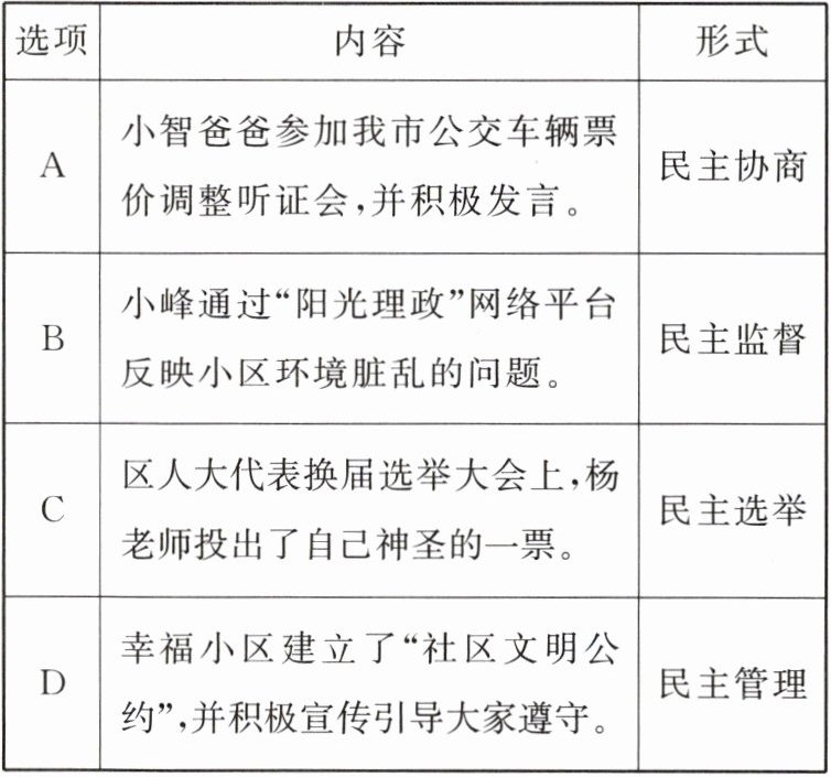 6. 在现代社会,民主应该成为公民的一种生活方式和生活态度,下列做法中体现了公民参与民主生活的是(