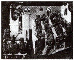 8. 下图描绘了中世纪大学课堂教学的场景,对于图片及其反映内容解读正确的是( )