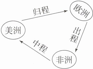 9. 在下图所示的“中程”中,欧洲殖民者运送的主要是( )