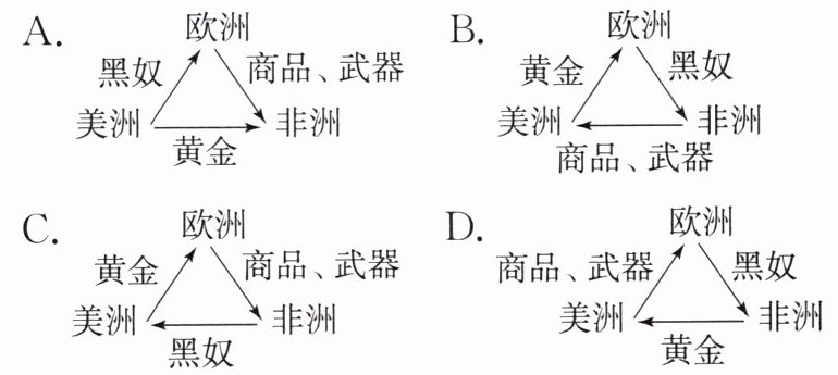 4. (2024·四川绵阳模拟)下列关于“三角贸易”示意图正确的一项是( )