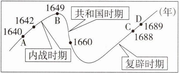 (1)A.资产阶级革命爆发;B.查理一世被推上断头台,共和国成立;C.“光荣革命”;D.通过《权利法案》。