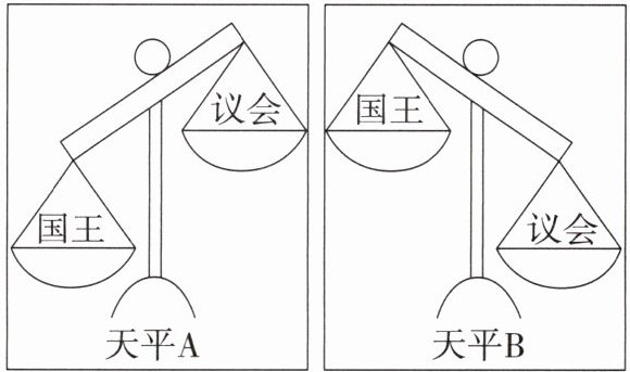 4. (跨学科)读“17世纪英国国王与议会权力对比示意图”,图中所示天平由A到B的变化,主要是源于( )