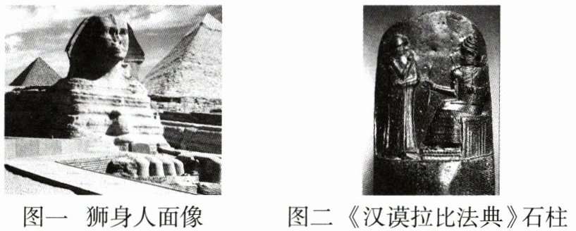 |图一 狮身人面像|图二《汉谟拉比法典》石柱|