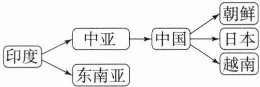 7. 下面示意图正确反映了某宗教的传播路线,由此推断这一宗教是( )