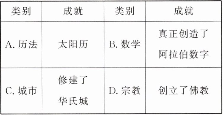 3. (2024·安徽六安期末)下表是某初三学生在整理古代印度文化时的草稿,请你帮他指出有误的一项( )