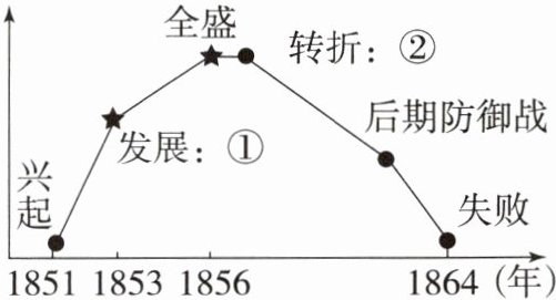 2. 下图是太平天国运动发展过程中的大事件,其中①②处分别指的是(