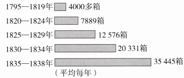 (2)趋势:英国向中国输入鸦片数量呈上升趋势。