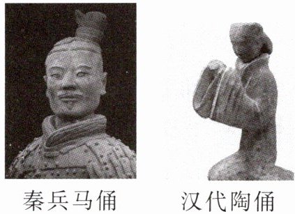 1. 观察下图,秦始皇陵兵马俑和汉景帝的阳陵陶俑虽然都是陶俑,但有很大的区别。秦兵马俑的面部表情都很严肃,而汉代陶俑的表情比较柔和、安详。这说明“文景之治”时期 (